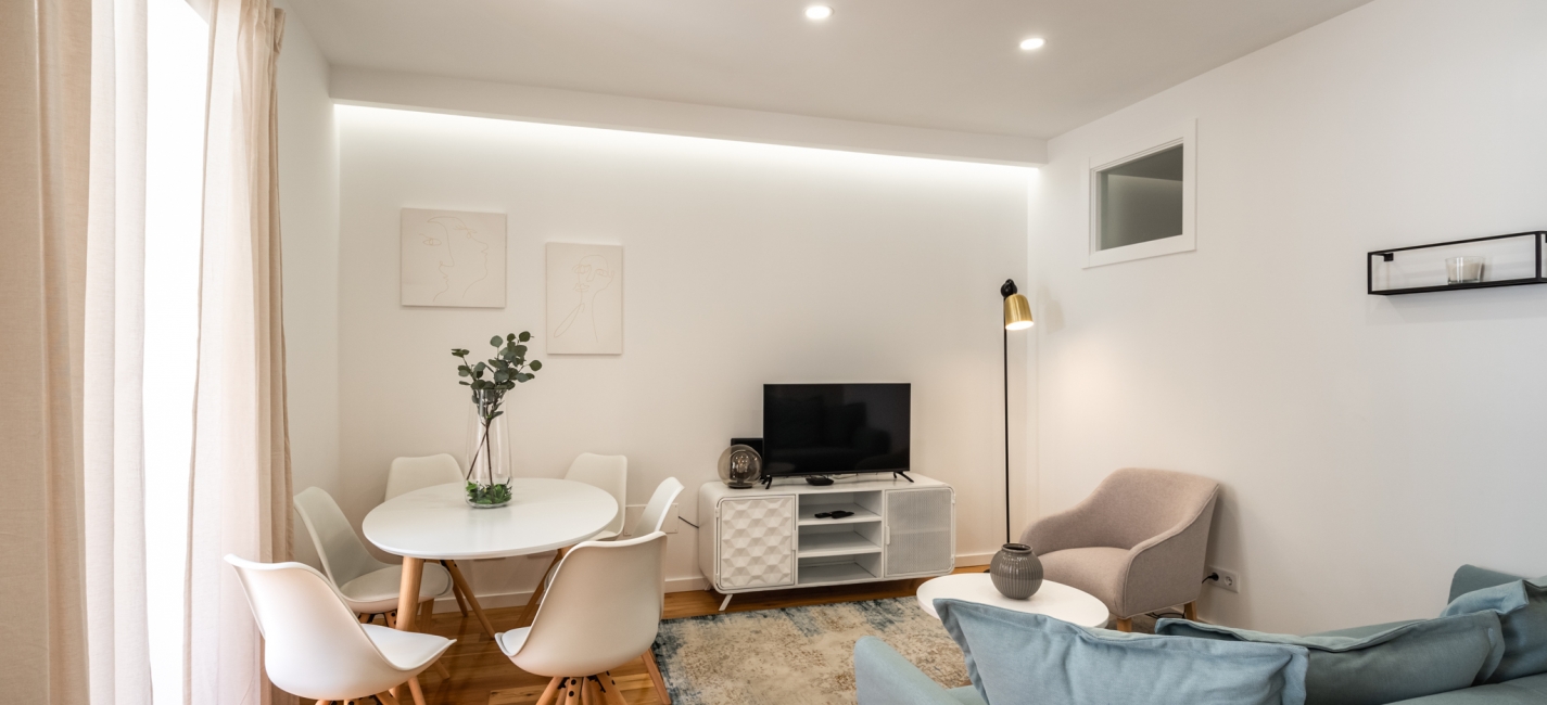 This is a luminous, calming, and well-equipped apartment for rent in Praça de Espanha that would be a great choice for a family or group of friends visiting the city. The open concept living room and kitchen is the perfect place to relax, prepare your meals, and socialize and the three bedrooms (one double and two twin bedrooms, one with a desk for remote workers) are super comfortable! With a sofa bed in the living room, Akicity Praça de Espanha Charm accommodates up to 8 people.